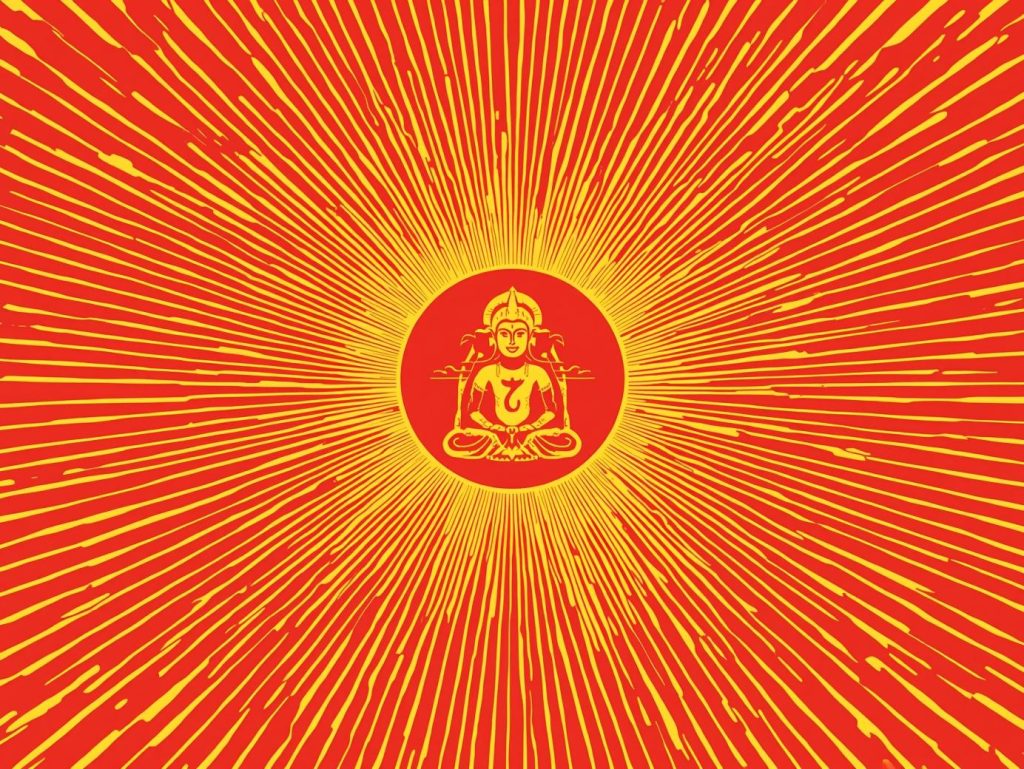 Golden represents purity, enlightenment, and divine wisdom. It signifies the radiant spiritual energy that emanates from the Tirthankara.